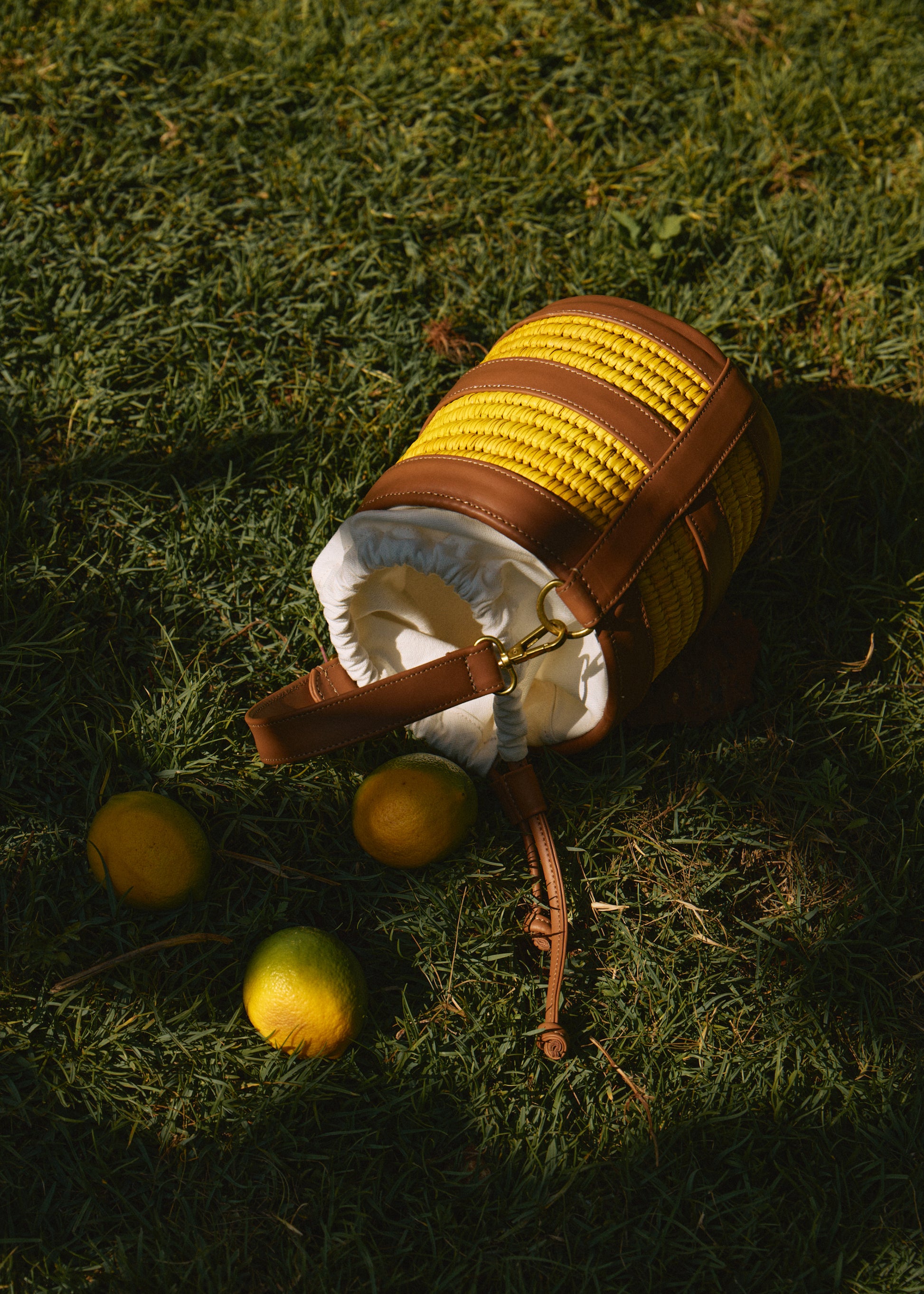 Handwoven from the resilient sand duom palm leaves and finished with premium leather, this bucket bag is a celebration of craftsmanship and natural beauty. Created in collaboration with a talented group of women from Lodwar, Kenya, this piece embodies both skill and community. Designed for versatility, it features detachable leather straps, allowing it to transition effortlessly from a shoulder bag to a handheld style.